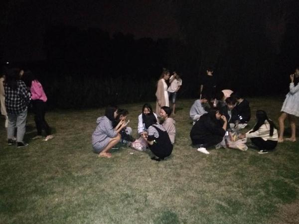 昆山华道数据,江南的夜晚月色优婉,商贸系师生席地而坐,共沐月光