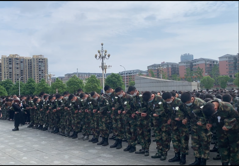 10时,活动正式开始,全体人员神情凝重,双手垂立,低头默哀。