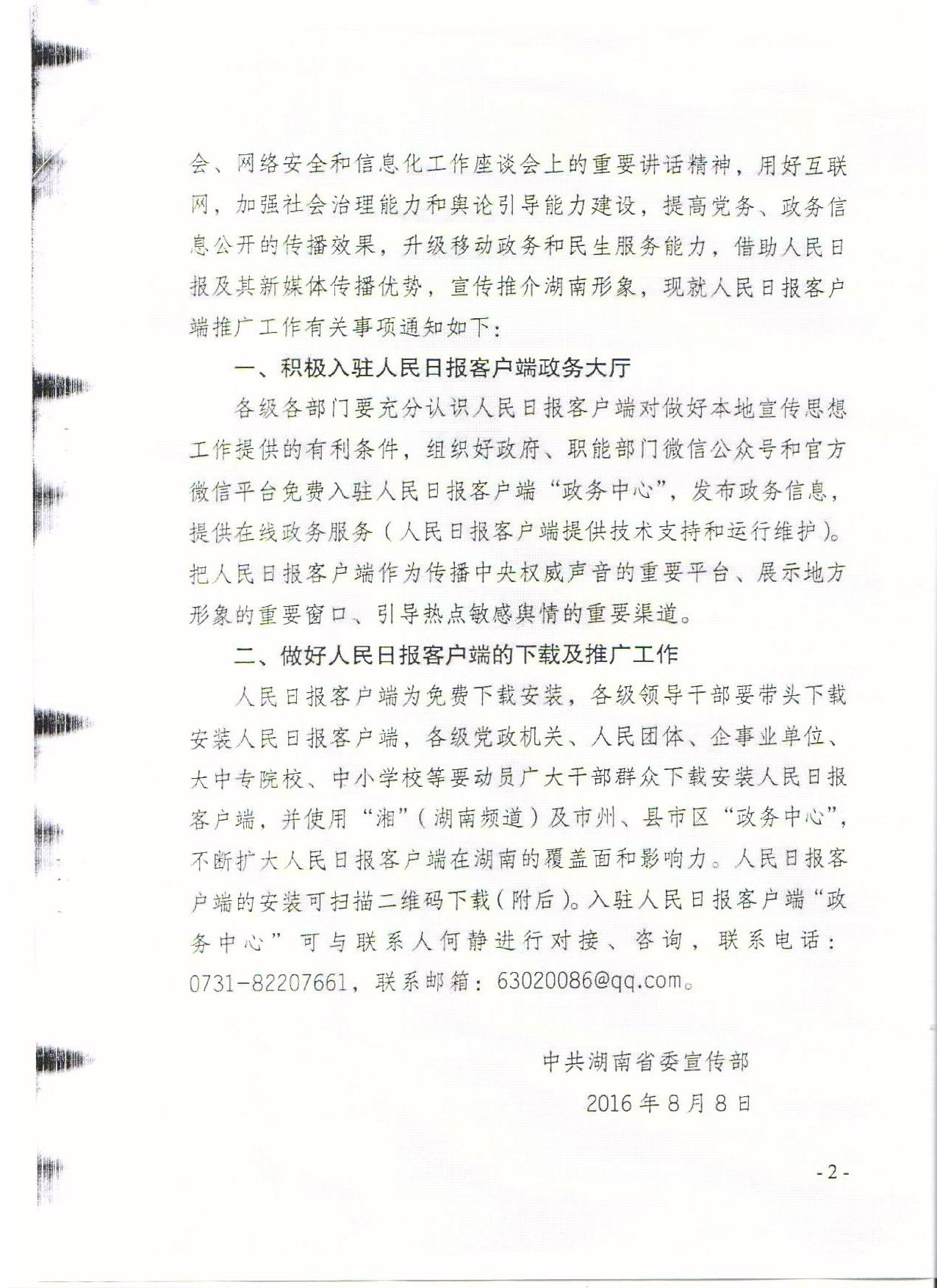 转发中共湖南省委宣传部《关于做好“人民日报”客户端推广工作的通知》
