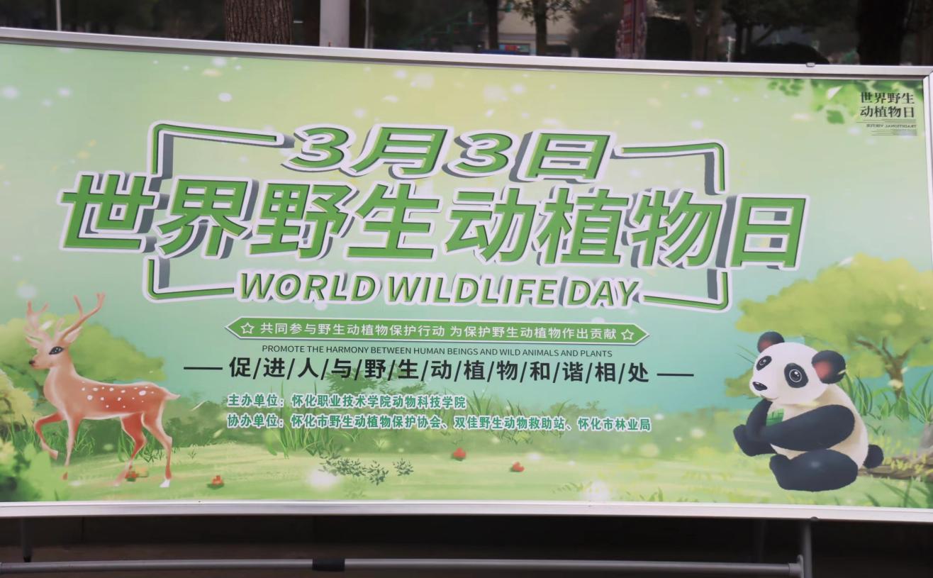 3月3日为第十一个“世界野生动植物日”,学校动物科技学院联合怀化市林业局、怀化市野生动植物保护协会,在校园内开展以“构建野生动植物智慧保护体系”为主题的环保宣传教育活动。