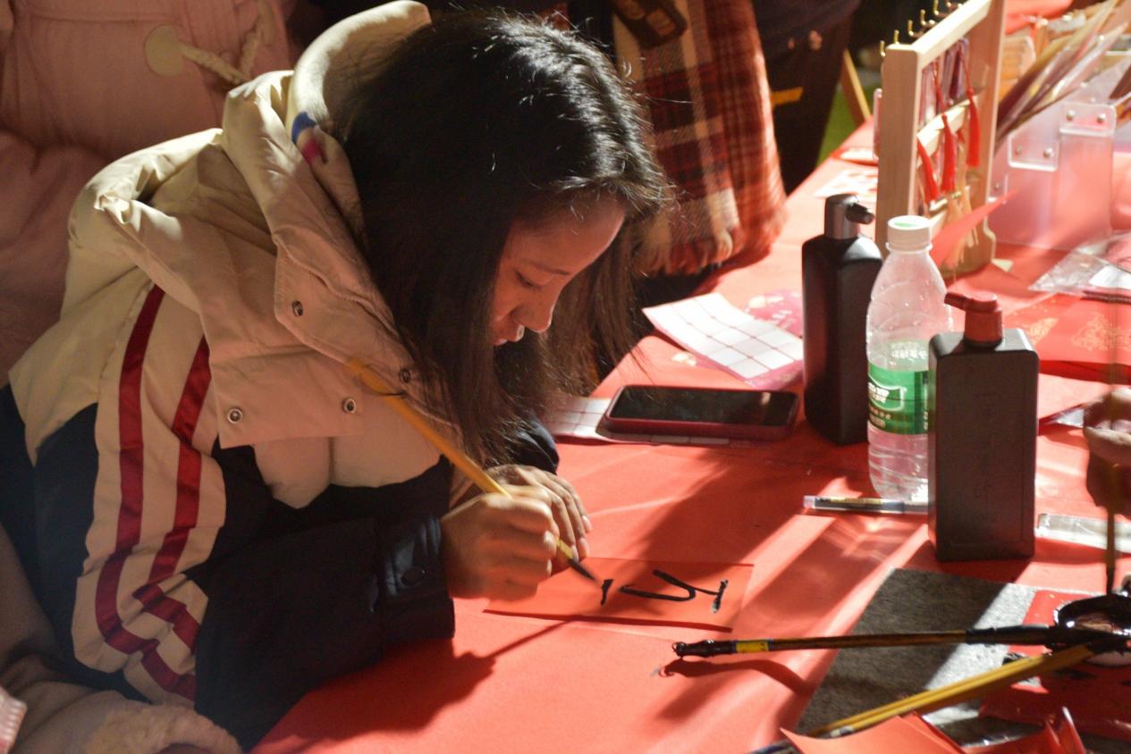 游园活动分为特色游戏、体验活动、奖品兑换三个部分。传统节目“猜灯谜”、精神集中“百步穿杨”、头脑风暴“记忆宫殿”、思维拓展“奇巧创想拼图汇”……参与者们在游戏间收获精美礼品,共享佳节欢乐。各二级学院还根据优秀传统文化设计了特色体验活动,让同学们切身体验中华文化的独特魅力。祈愿树下,参与者们纷至沓来,写下对新年的祈愿;书法桌前,参与者们执笔落墨,各书芳华。