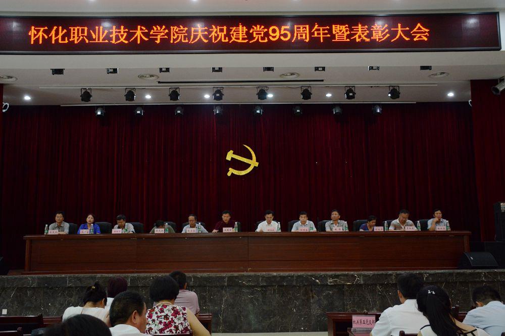 7月1日下午,怀化职院大会议室党旗飘扬、党徽闪耀,全院庆祝中国共产党成立95周年大会在这里隆重举行。全体院领导、全体党员、离退休党员代表、预备党员共300余人怀着激动的心情,共同回顾党的光辉历程,讴歌党的光辉业绩。